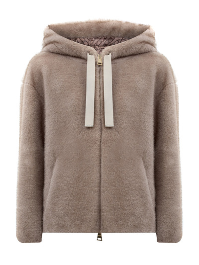 Herno Короткая шуба из эко-меха с капюшоном на завязках 266584 (бежевый, lpn31149914)