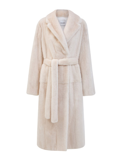 Yves Salomon Шуба из меха норки с лацканами и поясом в тон 266947 (белый, lpn31149923)