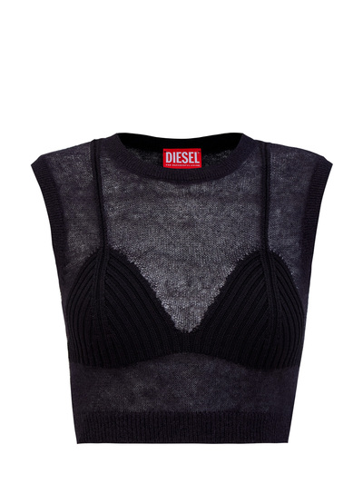 Diesel Полупрозрачный кроп-топ M-Arostica с вязаным лифом 256064 (чёрный, lpn31149967)