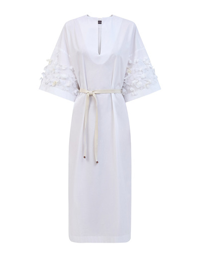 Lorena Antoniazzi Хлопковое платье с объемным цветочным декором и поясом 260802 (белый, lpn31150005)