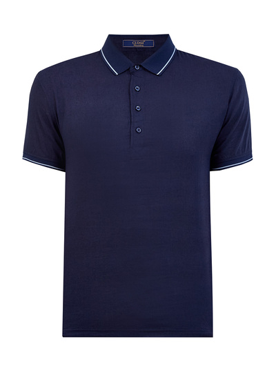 Cudgi Поло из тонкой льняной ткани с контрастной окантовкой 261244 (синий, lpn31150087)