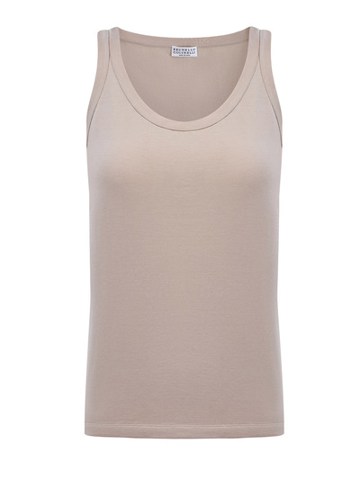 Brunello Cucinelli Топ из эластичного хлопка с ювелирной окантовкой Мониль 261591 (бежевый, lpn31150130)