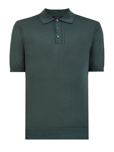 Cudgi Поло из хлопка, шелка и льна с вязаными деталями в тон 261418 (зелёный, lpn31150175)