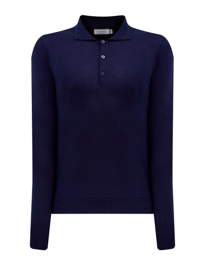 Canali Однотонный джемпер-поло из кашемира, шерсти и шелка 251369 (синий, lpn31150210)