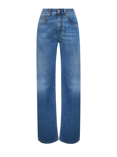 Легкие джинсы Contemporary Loose из хлопкового денима от Brunello Cucinelli объединяют стиль casual и утонченные детали. Прямые, свободные и широкие линии идеально сочетаются со слегка винтажным видом ткани, отличающейся размытыми оттенками с состаренным эффектом. Детали: нашивка из кожи на поясе, контрастная прострочка. Сделано в Италии.