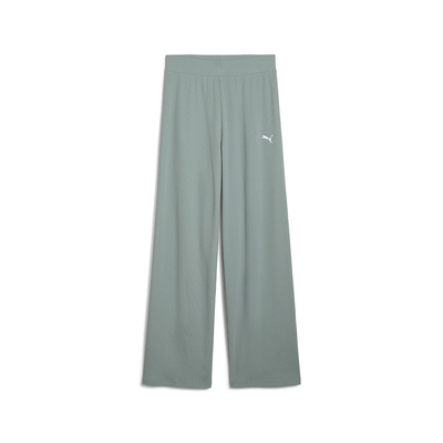 Подчеркните свой повседневный стиль с помощью этих брюк из трикотажа в рубчик с завышенной талией. Модель имеет прямой крой и эластичный пояс. Это комфорт и стиль без хлопот. Вышитый логотип PUMA добавляет спортивный штрих к вашему повседневному образу от PUMA.