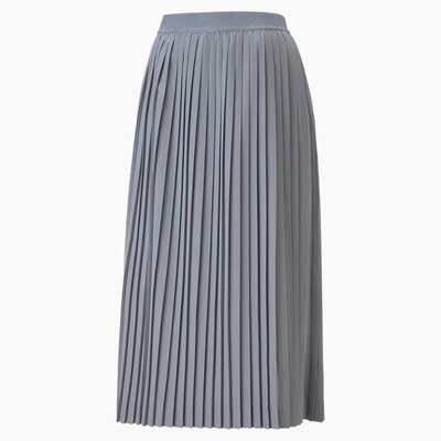 Профессиональное мастерство и сложные детали характеризуют модели SUNPŌ, что наглядно демонстрирует эта плиссированная юбка. Комбинация складок, жаккардового пояса и логотипа Cat в тон создает образ, который легко носить как в официальной, так и в неформальной обстановке.