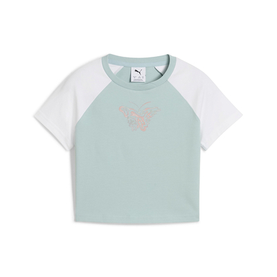 Футболка BUTTERFLY VIBE Baby Tee точно понравится маленьким модницам! Укороченная длина позволяет сочетать футболку с любым вариантом низа, а круглый вырез и мягкий хлопок в составе обеспечивают дополнительный комфорт. Детали брендинга PUMA подчеркивают высокое качество и оригинальность изделия.