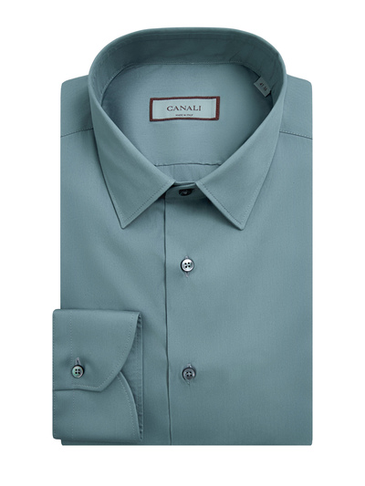 Canali Однотонная рубашка из гладкого хлопкового поплина stretch 258558 (зелёный, lpn31154690)