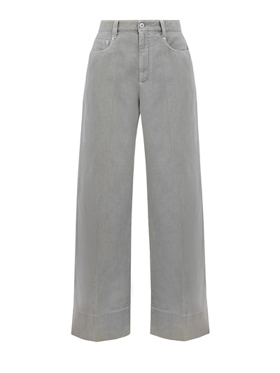 Brunello Cucinelli Джинсы Loose из хлопкового и льняного твила с деталью Мониль 262439 (зелёный, lpn31154751)
