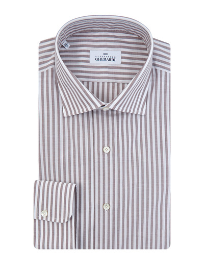 Alessandro Gherardi Хлопковая рубашка в стиле sprezzatura с принтом в полоску 264486 (серый, lpn31154752)