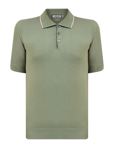 Canali Джемпер-поло из хлопковой пряжи с контрастным кантом 262305 (зелёный, lpn31154823)