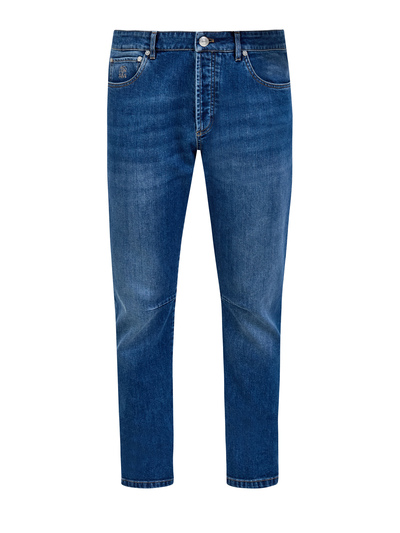Мужские джинсы от Brunello Cucinelli выполнены из эластичного японского денима. Неоднородный оттенок с выбеленным эффектом придает образу расслабленное настроение, окрашивание в готовом виде выполнено мастерами бренда вручную и делает каждую пару уникальной. Контрастная прострочка швов подчеркивает линии кроя. Детали: застежка на пуговицы, вышитый логотип Соломео, нашивка из замши на поясе, пять карманов. Сделано в Италии.