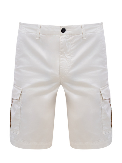 Однотонные мужские бермуды от Eleventy выполнены в базовом бежевом оттенке. Натуральный хлопок с добавлением эластичных волокон делает модель идеальным спутником в летний сезон. Акцент в стиле карго — объемные карманы с клапанами по бокам. Крой с эластичными вставками обеспечивает идеальную посадку по фигуре. Детали: объемные швы, шесть карманов, застежка на пуговицу и молнию, шлевки для ремня. Сделано в Италии.
