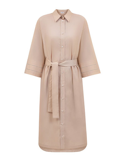 Peserico Хлопковое платье-рубашка с поясом и ювелирными цепочками 258969 (бежевый, lpn31154973)