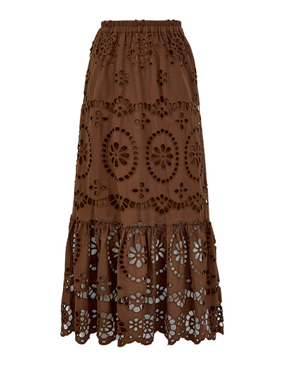 Mc2 Saint Barth Юбка-макси Jenny из кружевной хлопковой ткани Sangallo 262797 (коричневый, lpn31155101)