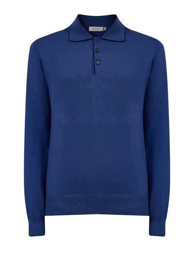 Canali Хлопковый джемпер-поло с вязаным воротом и окантовкой 257793 (синий, lpn31155125)