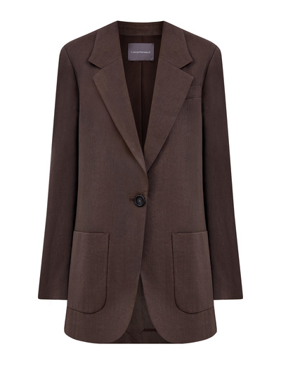 Lorena Antoniazzi Однобортный льняной жакет с накладными карманами 257458 (коричневый, lpn31155141)