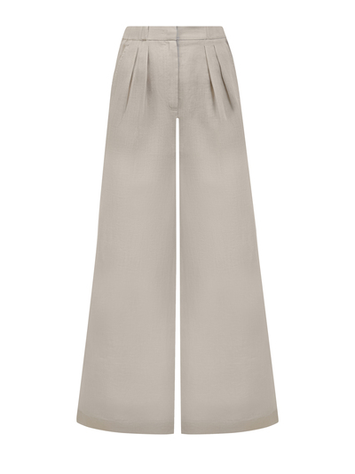 Легкие женские брюки от Lorena Antoniazzi станут идеальным решением для жаркого дня. Модель создана из тонкого крапивного волокна рами, полностью натуральный состав обеспечивает максимальный комфорт в летний сезон. Изделие свободного кроя с высокой посадкой, фактурными защипами от линии талии, прорезными карманами и символикой на спинке. Сделано в Италии.