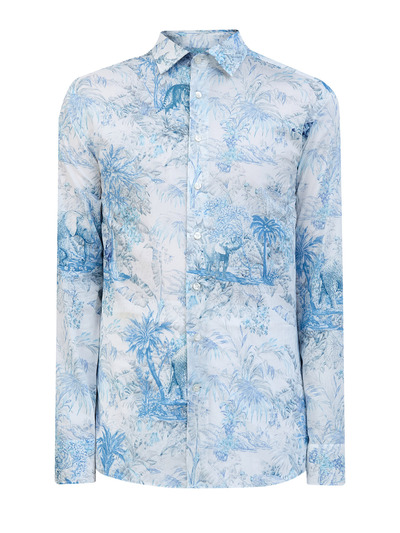 Мужская рубашка с длинными рукавами от Etro выполнена из тонкого хлопкового поплина. Поверхность модели декорирована набивным узором с флористическим мотивом — фирменным элементом Модного Дома. Изделие слегка приталенного кроя с классическим отложным воротником и застежкой на ряд пуговиц дополнено закругленными нижними кромками. Сделано в Италии.
