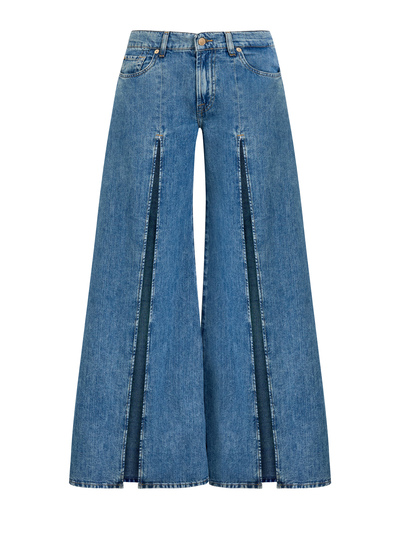 7 For All Mankind Широкие джинсы Willow Palazzo из хлопка и льна с разрезами 263132 (синий, lpn31155224)