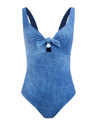 Fisico Слитный купальник в оттенке денима с завязками на лифе 262444 (синий, lpn31155268)