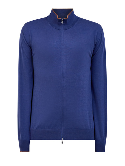 Gran Sasso Кардиган из шелка и хлопка на молнии с контрастной окантовкой 258209 (синий, lpn31155439)
