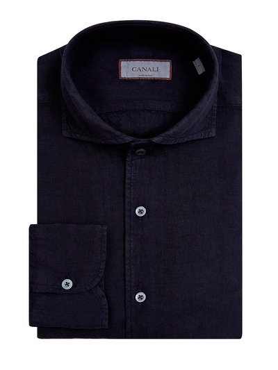 Canali Однотонная рубашка в стиле casual из натурального льна 258567 (чёрный, lpn31155449)