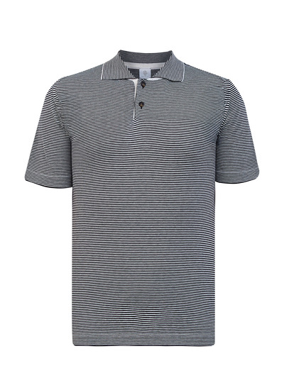 Eleventy Поло Platinum из шелка и хлопка с узором в тонкую полоску 259186 (синий, lpn31155452)
