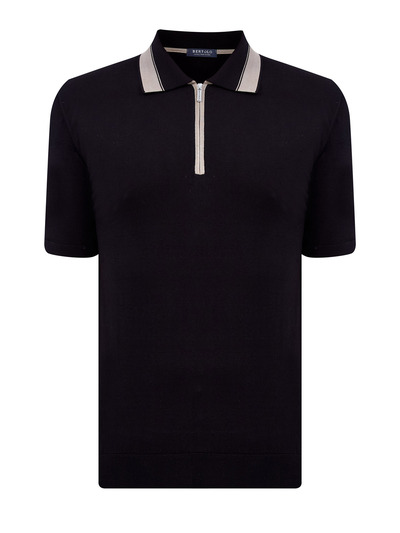 Bertolo Джемпер-поло из хлопка и шелка с контрастной отделкой 259668 (чёрный, lpn31155458)