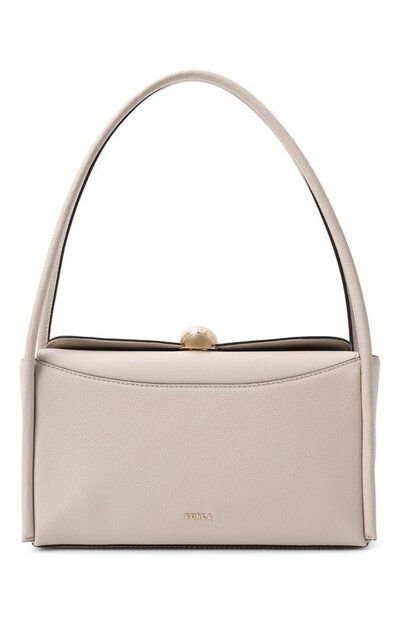 Сумку Nicole из зернистой и гладкой телячьей кожи дополнили двумя внутренними карманами: открытым и на молнии. Магнитную кнопку на откидном клапане украсили фирменной брендированной полусферой.
