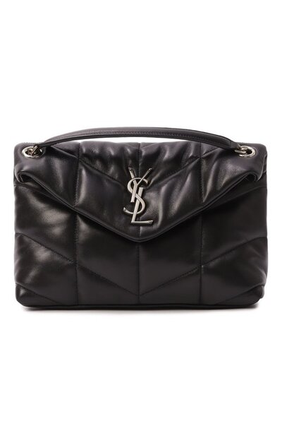 Небольшая черная сумка Puffer — это новый взгляд на узнаваемую модель LouLou. Шевронный стеганый узор изменился до неузнаваемости, а сам аксессуар приобрел объем. У сумки из матовой мягкой кожи жесткое дно, поэтому найти в ней телефон или ключи не составит труда. На клиновидном клапане — серебристая монограмма Кассандра, сложенная из инициалов Ива Сен-Лорана.