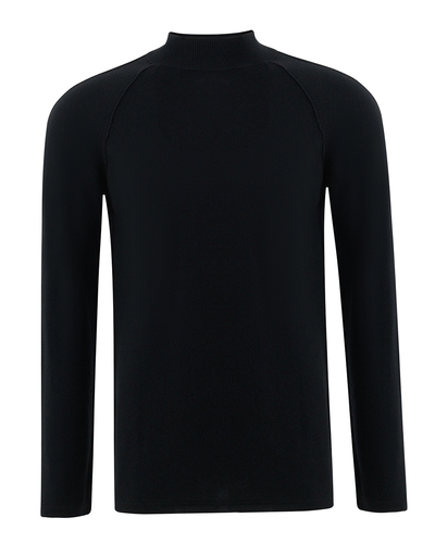 Этот джемпер выполнен из высококачественной мягкой шерсти, которая дарит чувство абсолютного комфорта и роскоши. Глубокий черный оттенок придаёт изделию изысканность и универсальность, позволяя сочетать его с любыми элементами гардероба. Стильный воротник-стойка аккуратно выделен эластичной вязкой, обеспечивающей идеальную посадку и добавляющей нотку современности. Реглановые рукава создают плавные линии, подчёркивая плечи и обеспечивая свободу движений. Манжеты и нижний край выполнены с использованием трикотажной резинки, что придаёт конструкции чёткость и завершённость. Брюки подчеркивают силуэт, создавая утончённый и современный образ. Этот джемпер — идеальный выбор для тех, кто ценит безупречный стиль и практичность, подходящий как для деловых встреч, так и для расслабленных выходных.