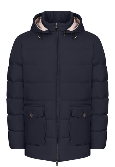 Стеганая куртка Corneliani надежно защищает от холода и ветра благодаря высокотехнологичным материалам. Модель с капюшоном и крупными накладными карманами идеально впишется как в повседневный гардероб, так и станет отличным дополнением классического образа.