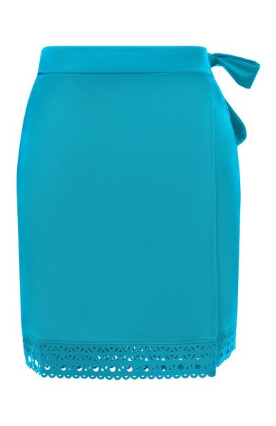 Короткое парео с запахом, фиксирующимся лентами сбоку, выполнили из эластичного материала Lycra Beauty® на основе нейлона. Низ модели из коллекции Ajourage Couture декорировали вставкой с ажурным узором.