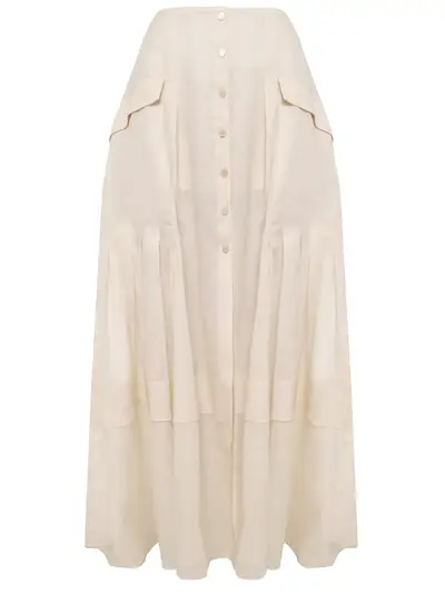 -Юбка-макси из хлопка от ALBERTA FERRETTI. -Модель свободного кроя с высокой посадкой на талии, крупными накладными карманами с клапанами, застежкой на пуговицы спереди и высоким разрезом.