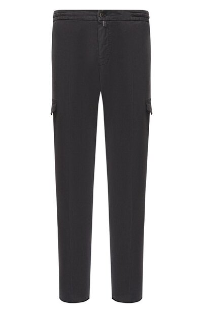 Зауженные брюки с внутренней кулиской на поясе выполнили из стрейчевого твила на основе лиоцелла. Модель с брендированным патчем сзади дополнили врезными боковыми и задними карманами и парой карго с клапанами на пуговицах.