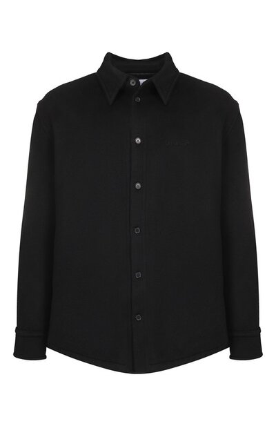 Куртку-рубашку с закругленной линией низа выполнили из кашемира с ворсом. Спереди вышили небольшой логотип в тон, а спинку подчеркнули контрастной надписью Touch carefully. Модель с брендированным вискозным подкладом дополнили фирменной пломбой Zip Tie.