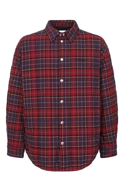 Для создания стеганой утепленной рубашки использовали хлопковую фланель в клетку. Модель с фирменной выбеленной эмблемой Arrow на спинке и вышитым логотипом на груди застегивается кнопками.