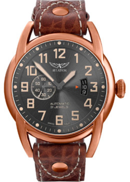 Механические часы с автоподзаводом. Запас хода на 38 часов. Водостойкость WR 100 (плавание без погружения). Центральные часовая и минутная стрелки. Секундная стрелка вынесена на отдельный циферблат. Индикация даты. Стрелки и метки с люминесцентным покрытием. Циферблат с часовыми индексами в виде цифр. Корпус выполнен из нержавеющей стали с PVD покрытием. Диаметр корпуса 46 мм, толщина 13 мм. Устойчивое к возникновению мелких механических повреждений сапфировое стекло с антибликовым покрытием. Кожаный ремешок коричневого цвета.