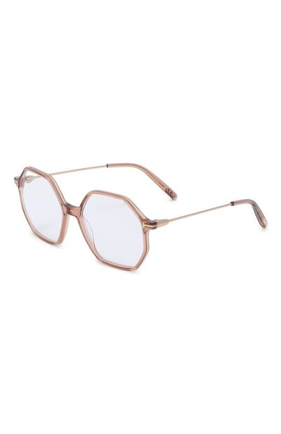 Оправу с фирменными T-образными креплениями дужек выполнили из металла и полупрозрачного ацетата. Модель с брендированными вставками на заушниках дополнили линзами с покрытием blue block.