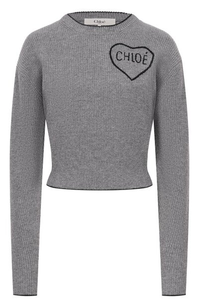 Пуловер с рифленым узором связали из шерстяной пряжи с добавлением кашемира. Контрастный кант вдоль края приталенной модели вторит вышивке в виде брендированного сердца спереди.