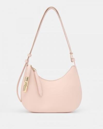Сумка на плечо Furla Goccia выполнена из зерненой кожи с контрастными деталями из гладкой кожи и украшена двусторонней молнией с необычной сияющей цилиндрической фурнитурой с логотипом Arch на одном из кожаных язычков. Изысканные формы ее круглого силуэта компактны, но достаточно вместительны, чтобы вы могли взять с собой все самое необходимое.