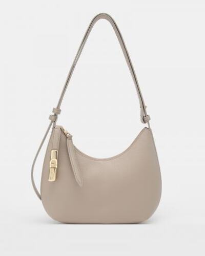 Сумка на плечо Furla Goccia выполнена из зерненой кожи с контрастными деталями из гладкой кожи и украшена двусторонней молнией с необычной сияющей цилиндрической фурнитурой с логотипом Arch на одном из кожаных язычков. Изысканные формы ее круглого силуэта компактны, но достаточно вместительны, чтобы вы могли взять с собой все самое необходимое.