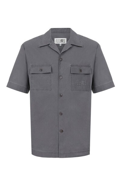 Рубашку свободного кроя сшили из чистого хлопка. Один из двух накладных карманов украсили вышивкой Numeric, а кокетку – фирменной горизонтальной строчкой.