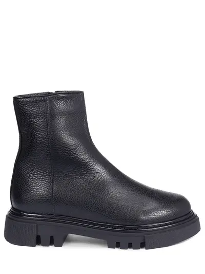 -Черные ботинки из натуральной кожи от STOKTON. -Модель с закругленным мысом, толстой резиновой подошвой и низким каблуком с глубоким протектором, застежкой на молнию сбоку, внутренней отделкой из натуральной овчины.