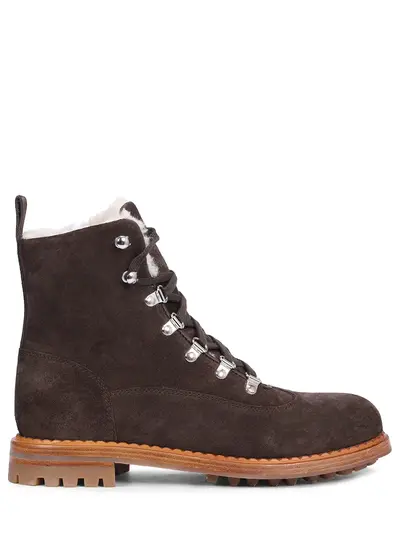 -Коричневые ботинки из бархатистой замши от KITON.