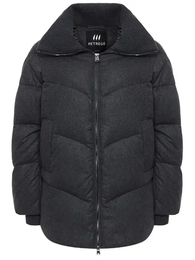 -Темно-серый стеганый пуховик из устойчивой высокотехнологичной ткани из смесового кашемира от HETREGO.