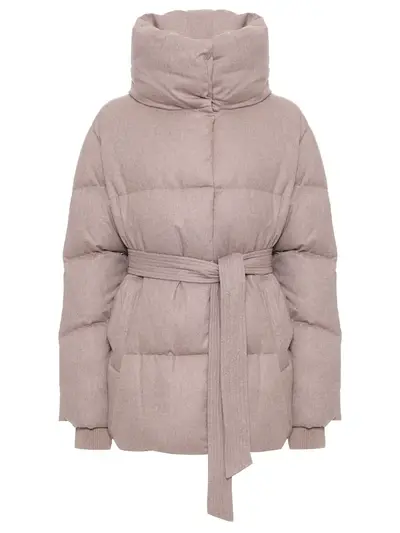 -Бежевый стеганый пуховик из смесового кашемира от HETREGO.