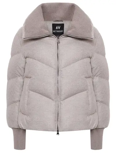-Бежевый стеганый пуховик из устойчивой высокотехнологичной ткани из смесового кашемира от HETREGO.